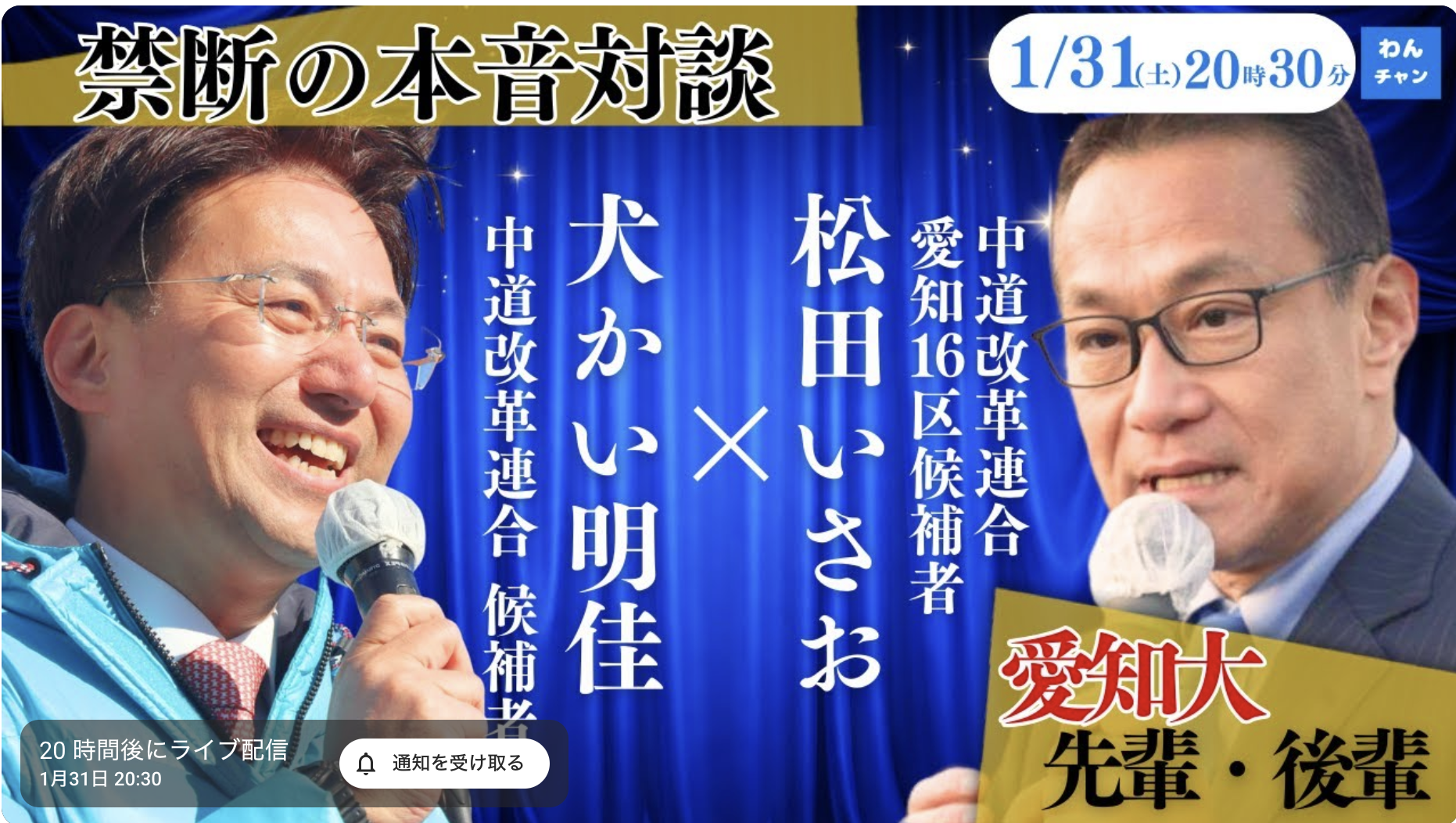 | 配信先 | YouTube 中道改革連合あいち応援チャンネル |