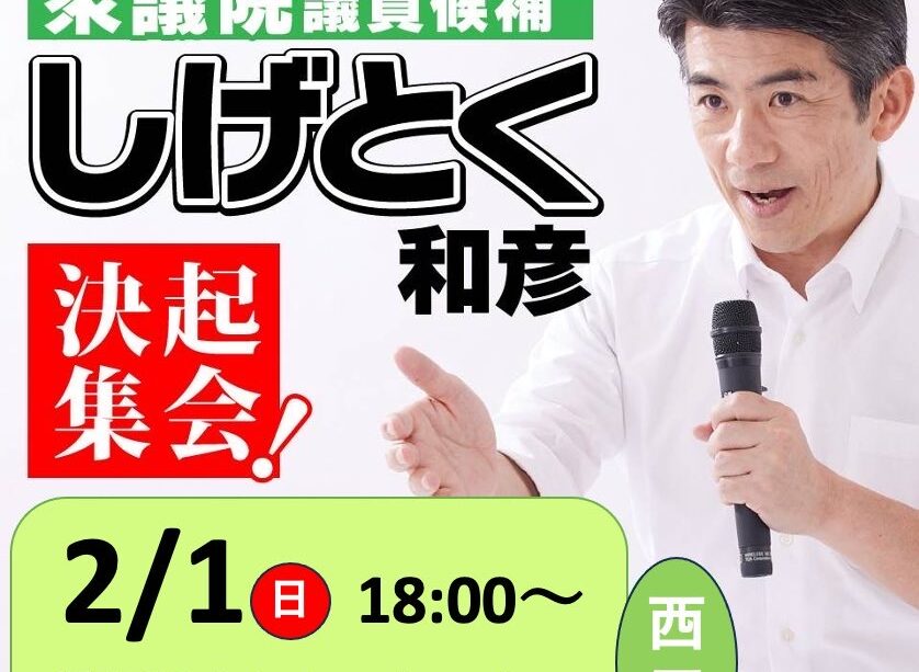 【2/1(日) 18:00〜】しげとく和彦 決起集会