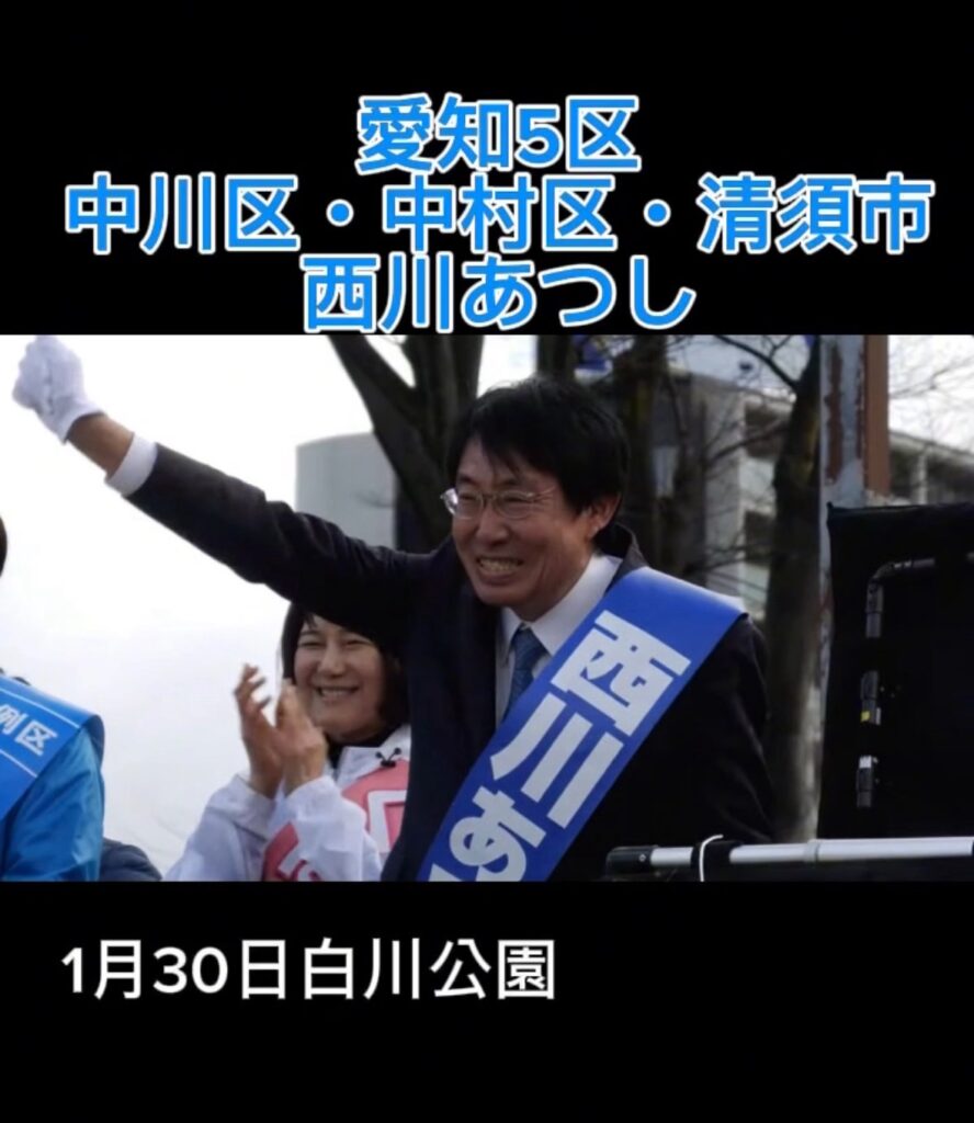 【2/2(月) 10:20〜/11:10〜/15:00〜/17:00〜】愛知5区 西川あつし 街頭演説